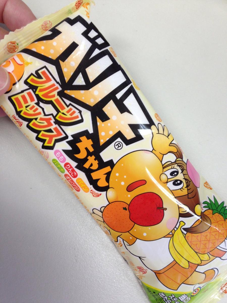 ガリガリ君ではなくガリ子ちゃんを購入。この違いはよくわかりませんが、フルーツミックスというだけあって一口食べる度に色々な果物の風味がして美味しいです。ちょっぴり甘めなので、後味はイマイチな感じです。