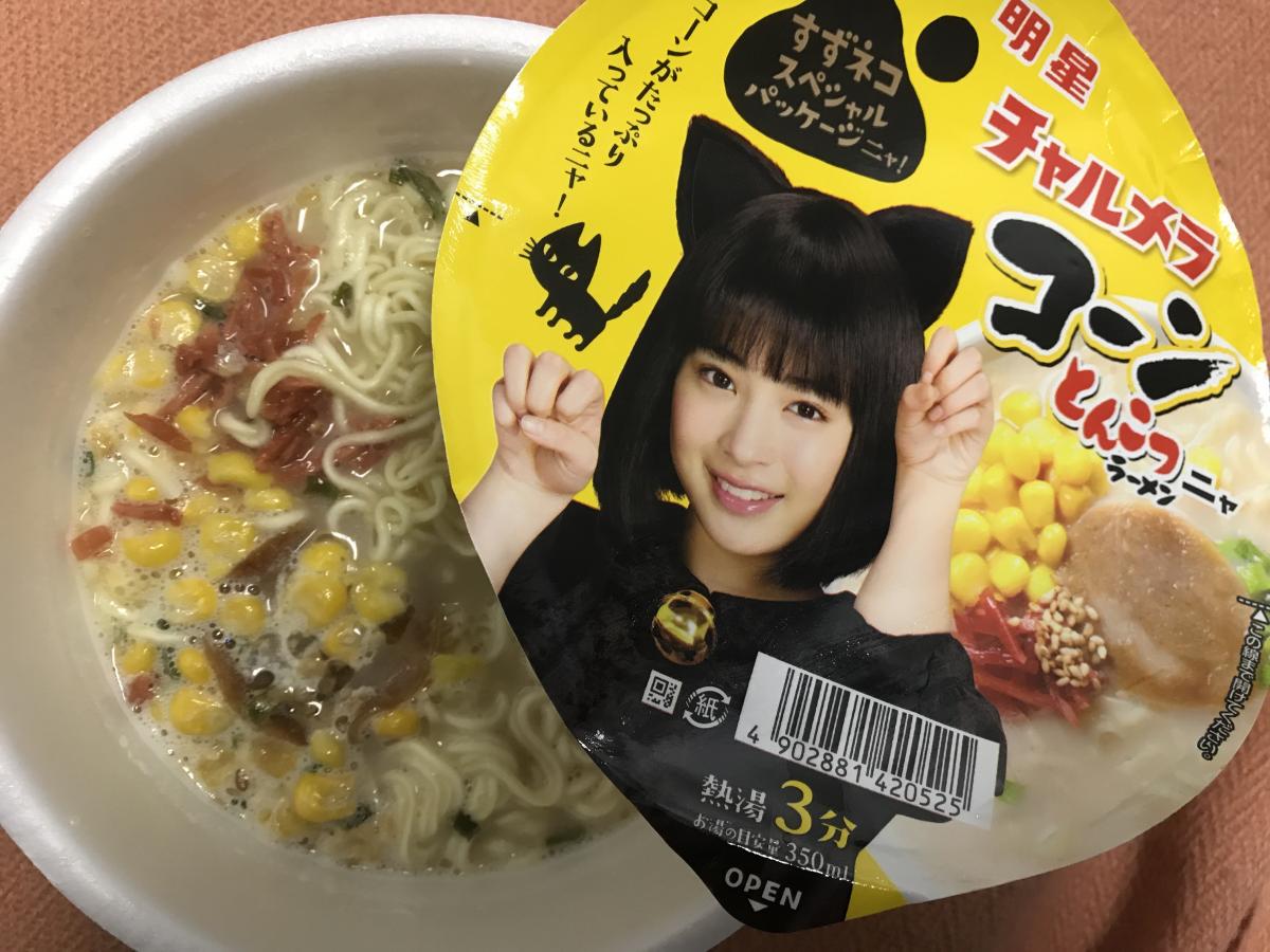 可愛らしいパッケージに惹かれて購入した商品です。とんこつのスープと麺、そしてコーンがよくマッチしており、とても美味しいです。コーンが良いアクセントになっていると好感を持っています。
