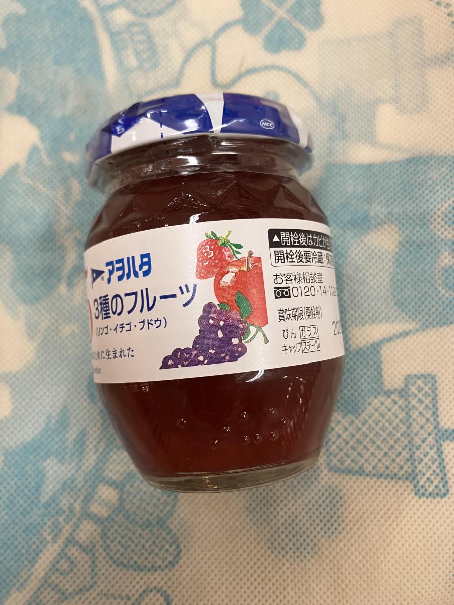 りんご、苺、ぶどうの3種類の果実をミックスしたジャムです。甘みと微かな酸味のバランスがよいうえに、りんごのシャキッとした感じやぶどうの食感があり美味しいです。
