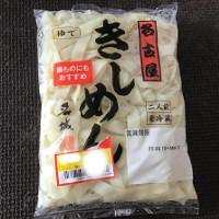 きしめんとしても結構幅広の麺で2センチ近くはある。そんな幅広麺だけど、いかにもきしめんらしいツルッとしたのどコシが楽しめるのが特徴。本当におなかのなかに吸い込まれるような間隔で食べることができて、さらに麺の微妙なウェーブがのどごしの良さをより引き立ててくれているなという印象を受ける。それに煮込んでもやわらかくならないのもいいところで、紫根が経ってもチルド麺的なぶよぶよ感はなくて、最後までいい食感で...