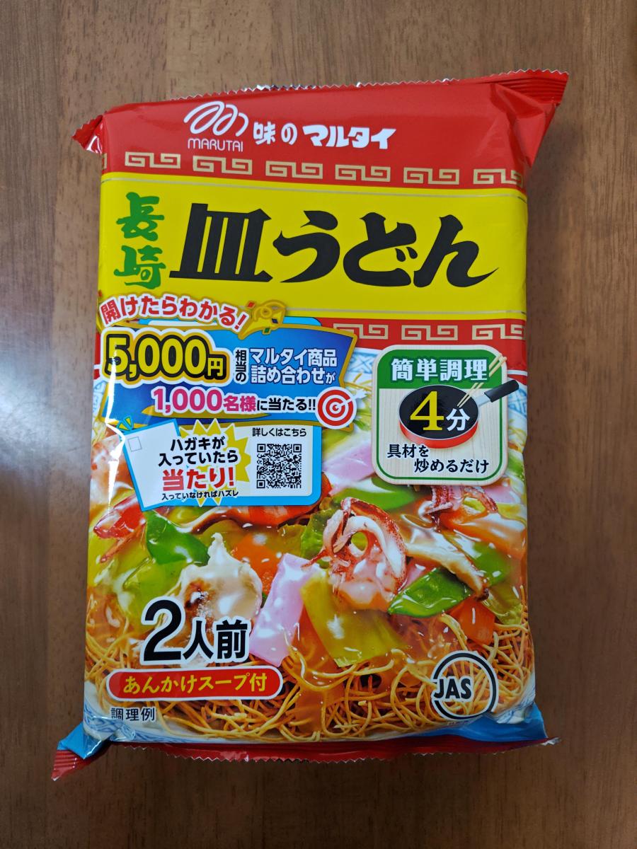 長崎県出身なので皿うどんは時々作って食べてます。こちらは先日YouTubeでリュウジさんが美味しいと言っていたので、初めて買ってみました。麺と餡かけスープは入っているので、あとは家にある具材を炒めてかけるだけ!簡単に皿うどんが食べられます。2人前分入って160円くらいで売ってたのでコスパも良いです。美味しかったのでまたリピしようと思います。