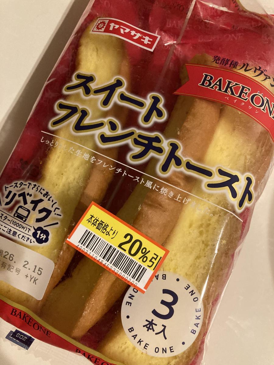 袋を開けるとフレンチトーストの良い香りがして嬉しくなりました。そのままでも美味しかったですが、レンジで少し温めるとしっとりした食感に。トースターで焼くと表面がサクッと。3本入りなので色々な食べ方が楽しめました。