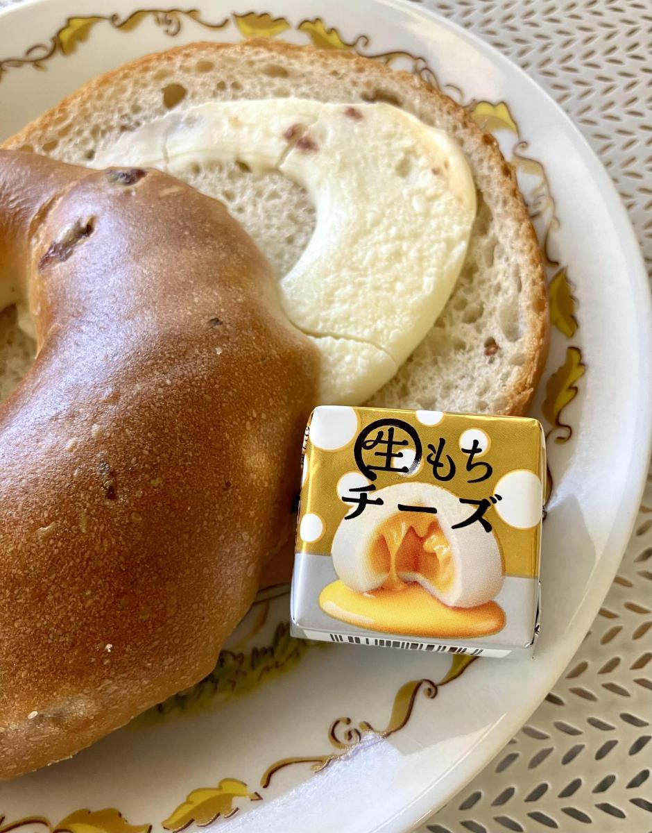 黄色いチョコはモッツァレラとチェダーチーズ風味チョコになっていてコクのある甘しょっぱい味がいいです。生もちはむにゅっとした食感でのびがあります。斬新な組み合わせもよくさらに美味しいことにも満足できました。チーズクリームをサンドしたベーグルの食後のデザートとして...