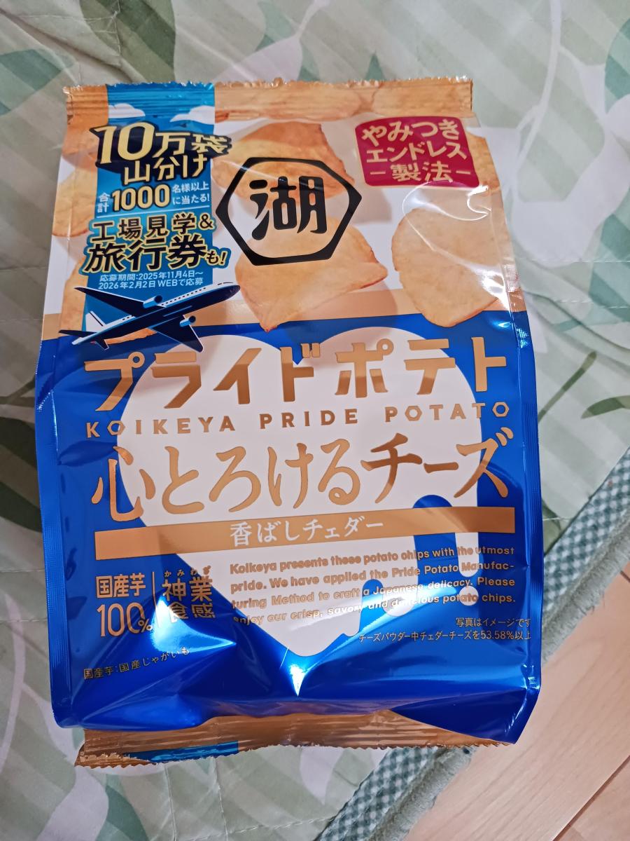 濃厚なチーズ味なチップスかなと思い、おいしそうだったので買いました。食べてみると、香りもよく、チーズとこのチップスの食感がよく合っていておいしかったです。リピート間違いなしです!