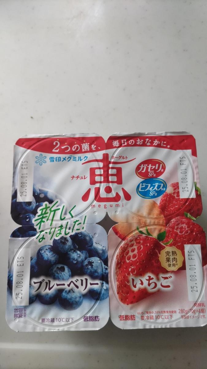 低脂肪なのに濃厚で果肉がいっぱい入っていて美味しいです。ブルーベリーといちご、どちらも好きなので両方食べられるのも嬉しいです。ガセリ菌とビフィズス菌2つの菌がとれてお腹に良さそう。