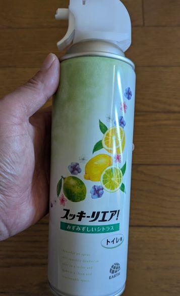近所のドラッグストアで安売りされていたので買っでみました。パワー噴射で、ワンプッシュで、トイレが消臭されるので助かります。家に喫煙者がいて、廊下や、階段にタバコの嫌な臭いが溜まるので、それにも噴射してみましたが、爽やかなシトラスの香りで、大嫌いなタバコの臭いが消臭されました。トイレ以外にも使えると思います。それにしても、タバコ大っ嫌いです。