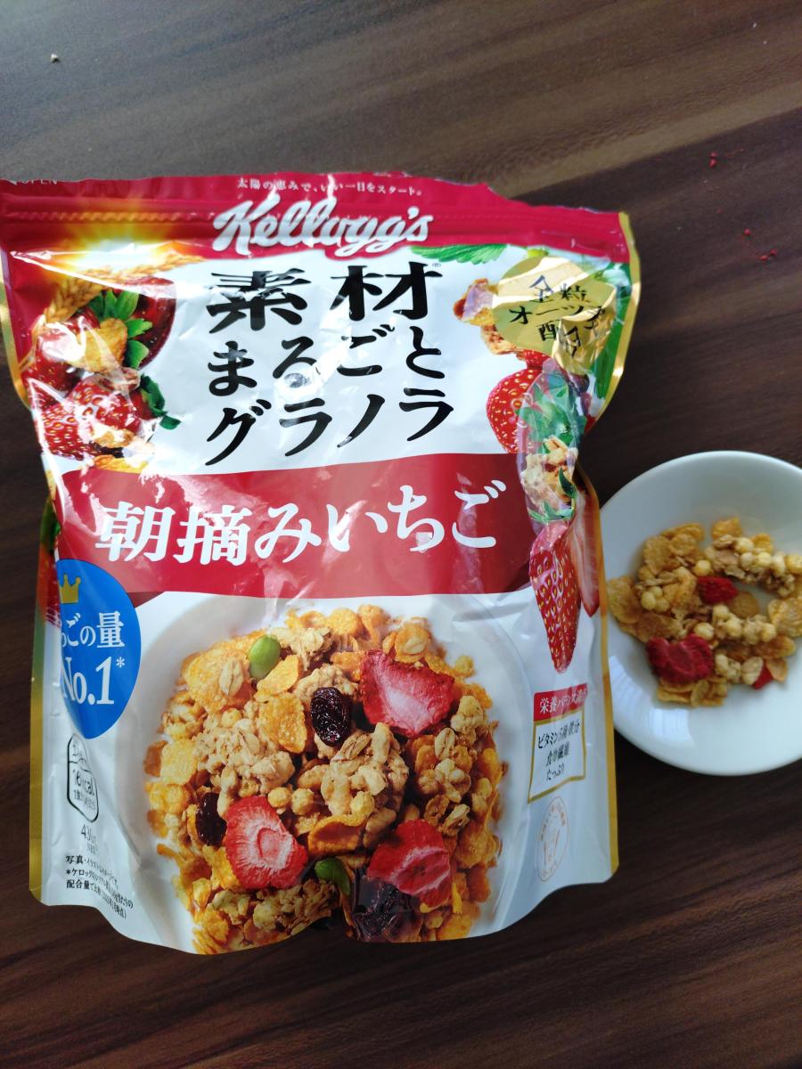 あまり食欲がない時や時間がないバタバタ忙しい日の朝ごはんに大活躍です。牛乳をかけても良し、ヨーグルトと混ぜて食べても美味しいです。美味しく鉄分や食物繊維がとれるのは嬉しいですね。苺もいっぱい入っていて満足です。