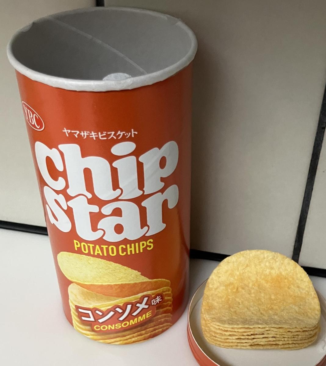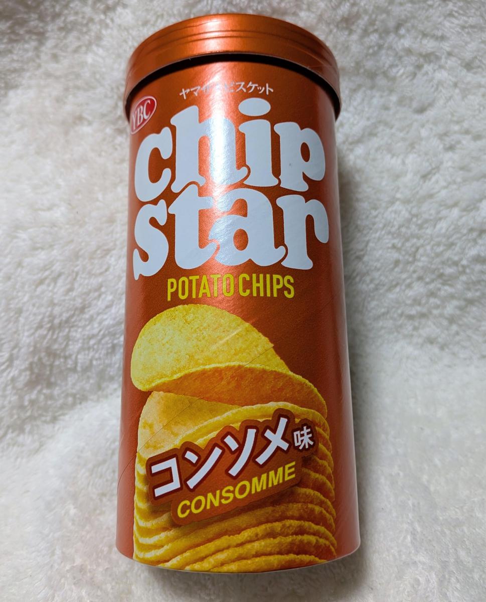 オレンジ色のチップスターは、コンソメ味とのこと。ポテトチップスでは、とてもなじみのある味付けです。