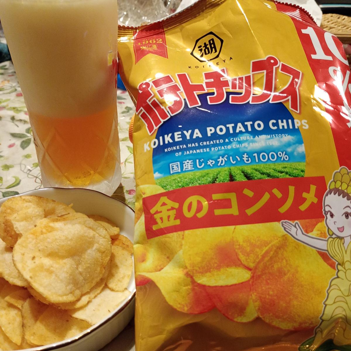 湖池屋のポテトチップスではのり塩が好きなのですが、家族がコンソメ味を買ってきたので久しぶりに食べました。