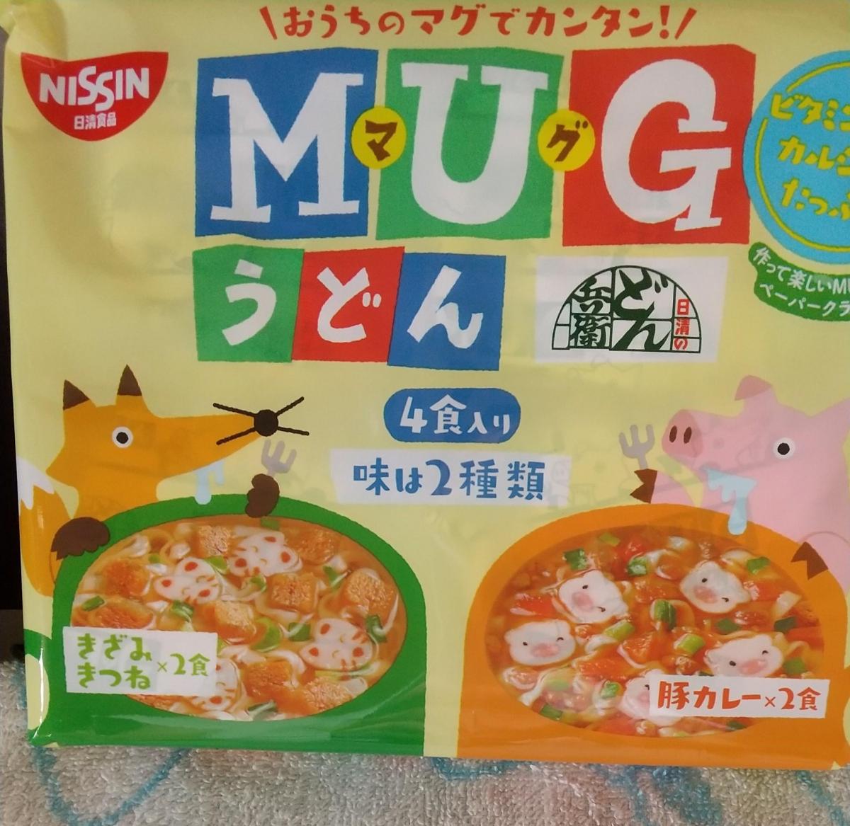 マグヌードルというのは知っていましたが、マグうどんというのもあったんですね。20g の小さいうどんが4つとスープは別で豚カレーときざみきつねが2つづつで4食入りです。味はどん兵衛なので間違いない。豚カレーはちょっとカレーヌードル風。ちょっと食べたい時や、スープがわりにおにぎりととかよさそうです。豚ときつねのカマボコもかわいい。これはとっても便利ですね。また利用したいです。マグヌードルの方もまた食べてみたくなりました。