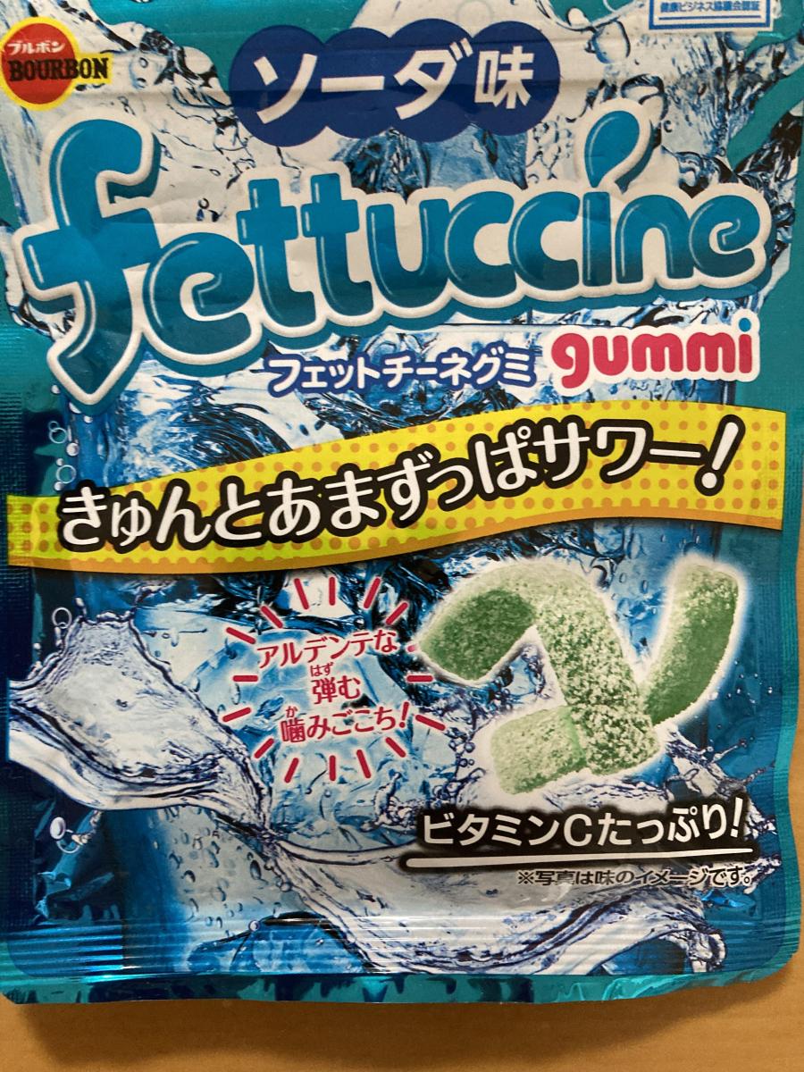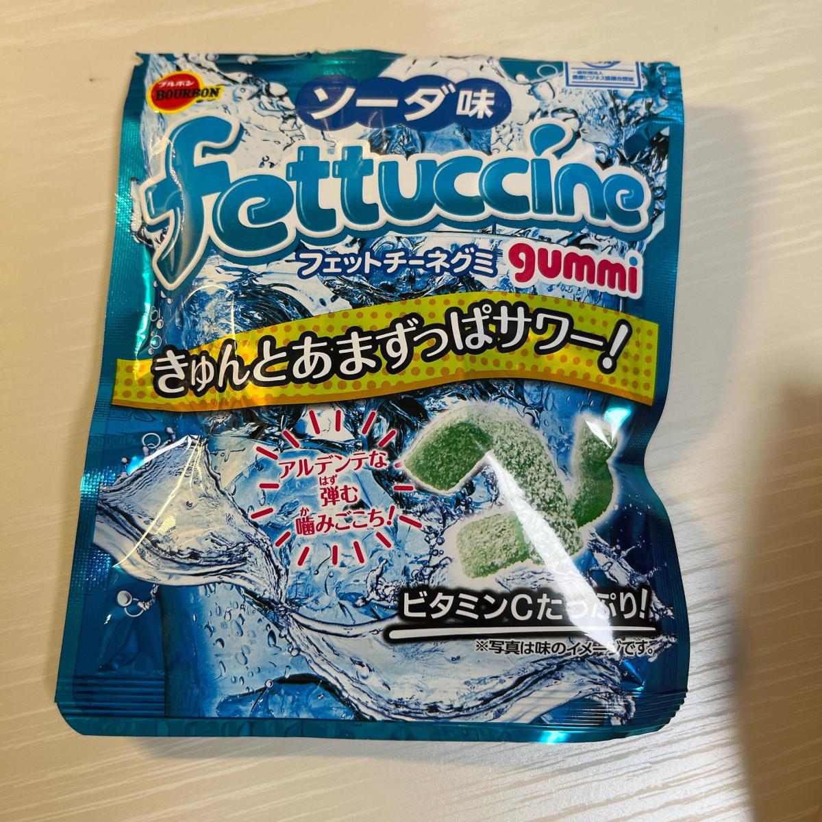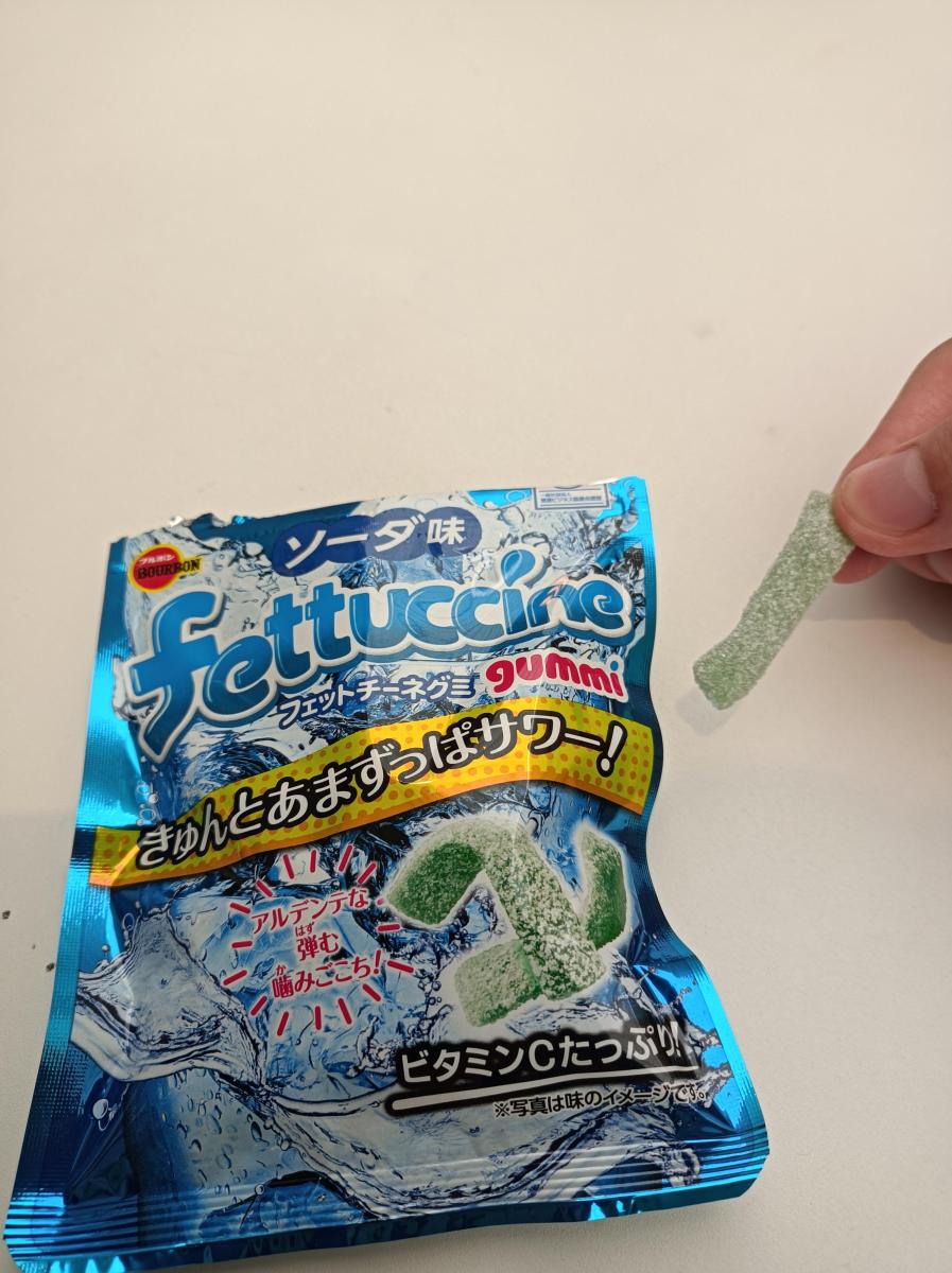 スーパーでブルボンのフェットチーネグミのソーダ味を購入してみました。ソーダ味が甘酸っぱいサワーでアルデンテで嚙ちごごちがよくて食べ応えがあり美味しかったです。