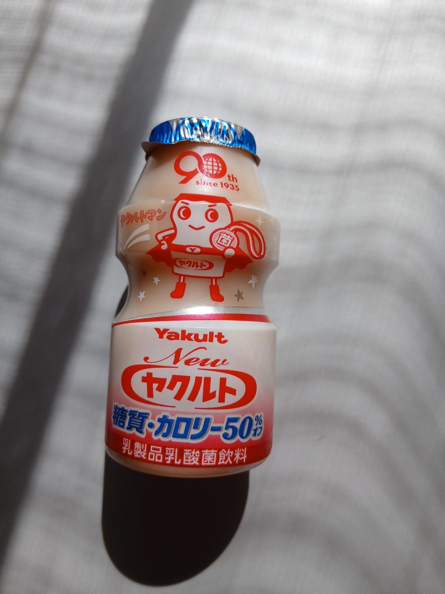 普通のヤクルトを買ったつもりが、なんだか蓋の色が青い...カロリー50%のものと間違えたようです。カロリー控えめで気になる方にも安心して飲めますね。味が違うのかなとドキドキしましたが、よく味わうとややあっさり?くらいの違いで、普通に美味しく飲めました。変わらない懐かしい味です。
