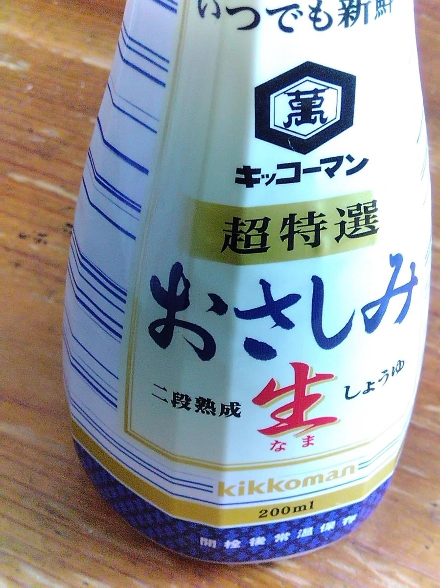 刺身醤油っていうと、九州の甘口を連想しますが、別に普通の醤油です。味も普通。