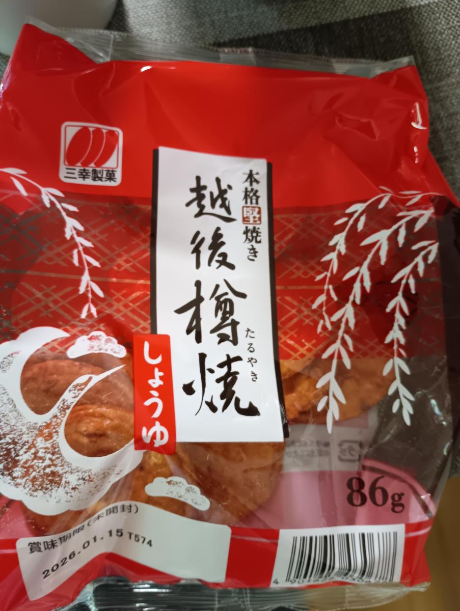 いつも緑の袋の樽焼を購入していますが、醤油味を試しに買ってみました。普通のお煎餅って感じです。個人的には緑の袋の方が好きだと感じました。