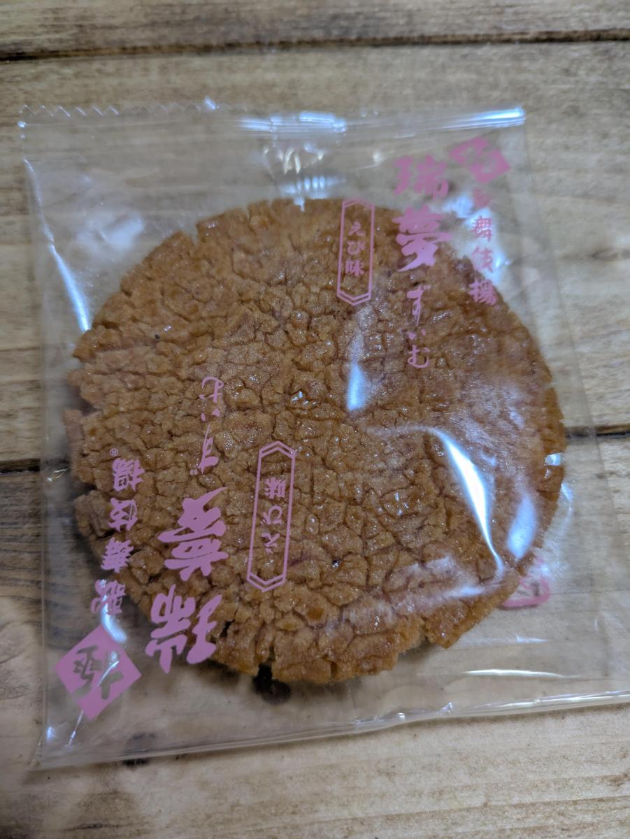歌舞伎揚と思って食べるとびっくりするかもしれません。海老と醤油の味がして、歌舞伎揚とはまた違った味がしました。ほろっとした食感で、軽い感じで食べられました。