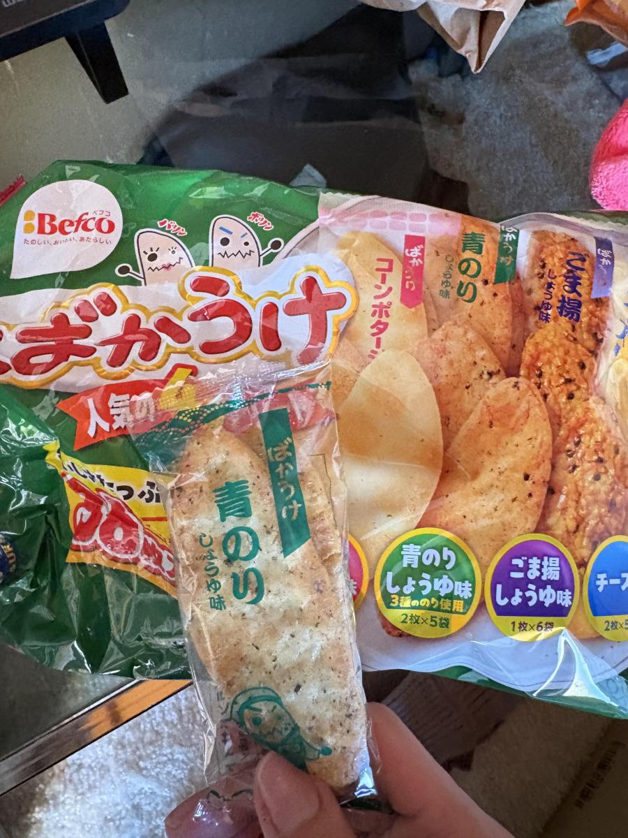 青のりしょうゆ味は、さっぱりとした醤油に青のりの風味がアクセントにあって良かった。