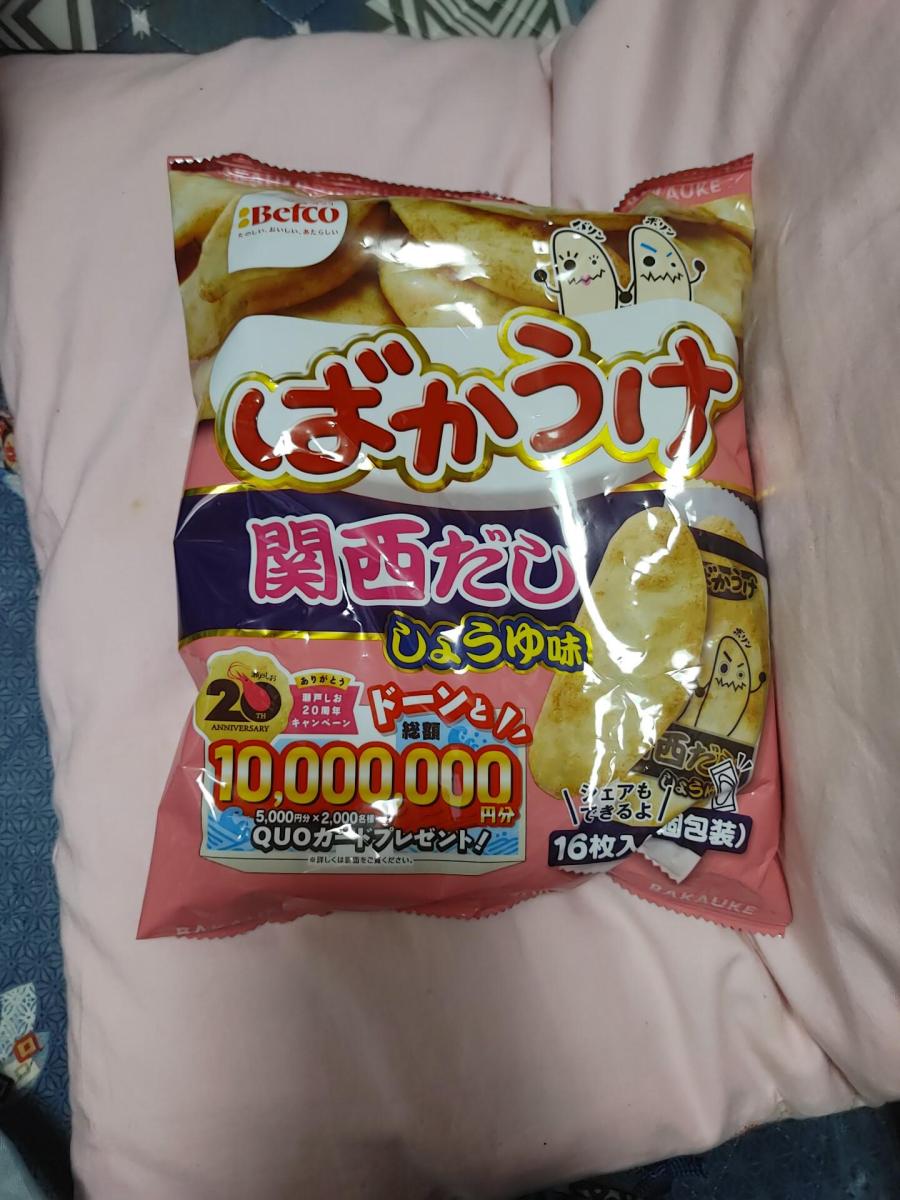 せんべいに粉末パウダーがまぶしてあるので味が濃いのかと思ってましたが、そうでもなかったです。お出汁の味わいは美味しいですが薄いかなと思えました。白い軽くてサクサクなせんべいが淡泊なので濃い方が良かったかな。刺激な嫌な人には逆に向いてる味かも。