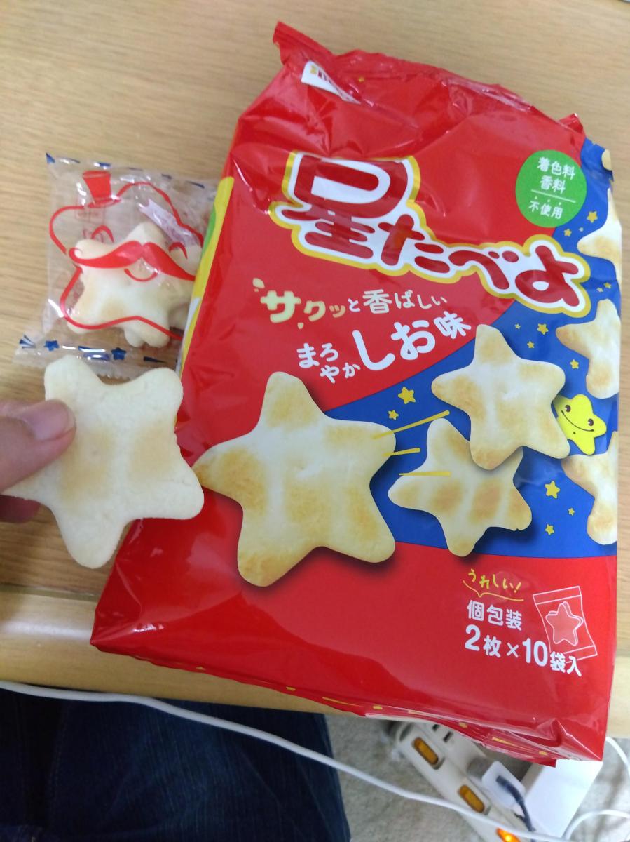 クリスマスの差し入れで頂きました。味はあっさりした塩味でよくあるサラダせんですが、何と言っても形が星形なのが可愛くてとてもテンションがあがります。個包装の袋にもかわいいイラストが描いてありプレゼントに良いですね。