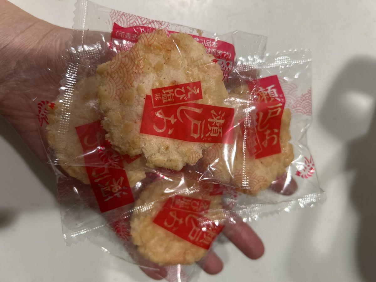 瀬戸の汐揚、えび塩味です。さっくり軽い食感の丸くて食べやすいサイズの個包装の揚げ餅です。あっさりしていて、ほんのりえびの味と風味がして塩加減もちょうど良い揚げ餅でした。食感も軽めで、個包装なので新鮮に味わえて美味しかったです。