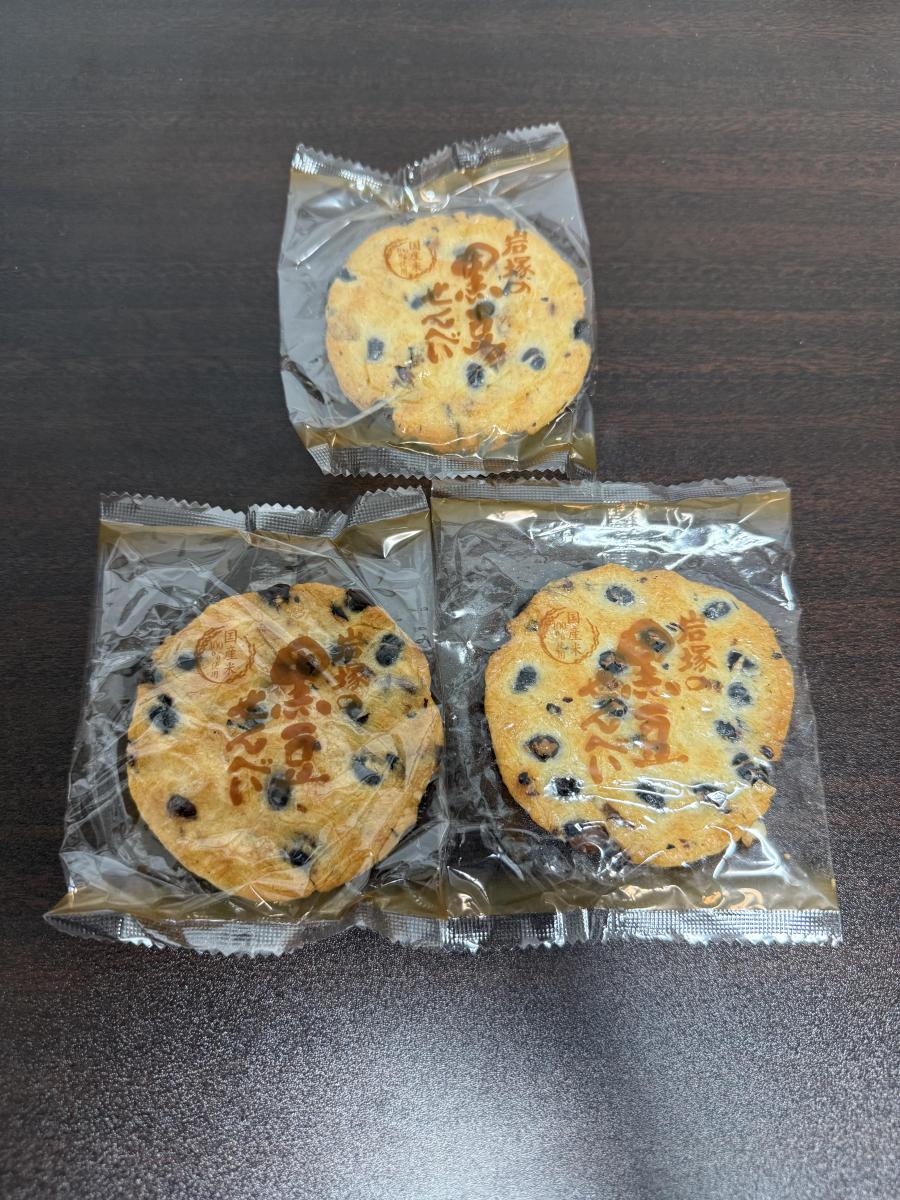 おせんべいに練りこまれている黒豆の香ばしさを感じられます。