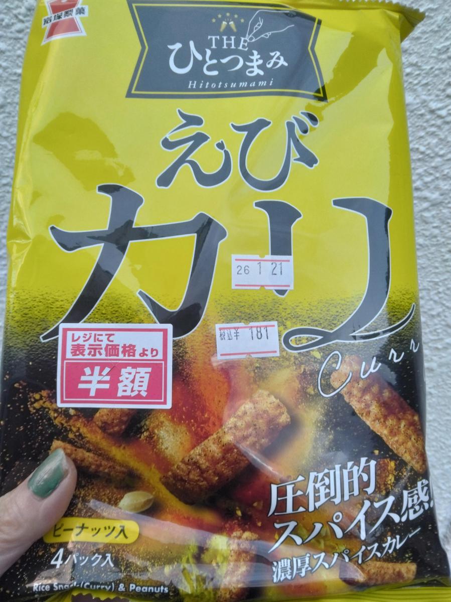 カレーのスパイスがしっかり効いていておつまみに最適です!カリカリとした食感で食べ応えがあります。えびの味は薄く感じました。4袋に小分けしてあるので食べやすいです。安かったのでまたリピートしたいです。