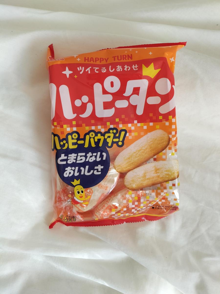 ポリポリの食感のせんべい、またなんといってもこのハッピーターンの粉は、どうしてこんなにやみつきになるんでしょうか。