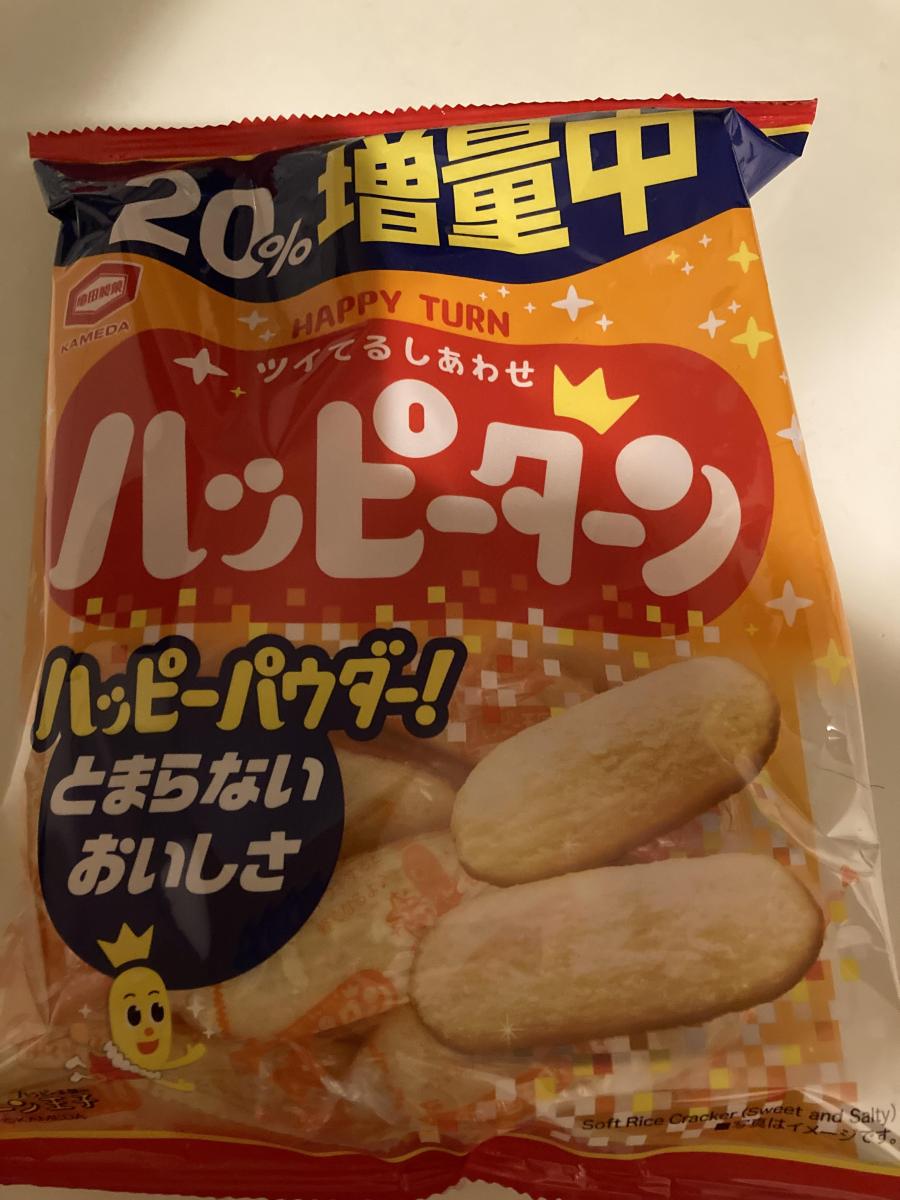 昔からなじみのあるハッピーターン。久しぶりに食べたら、美味しかったです。甘じょっぱい、ハッピーパウダーがおせんべいにまぶされてクセになりついつい食べてしまう味です。パウダーが手についてしまうのが難点ですが、美味しいおせんべいです。