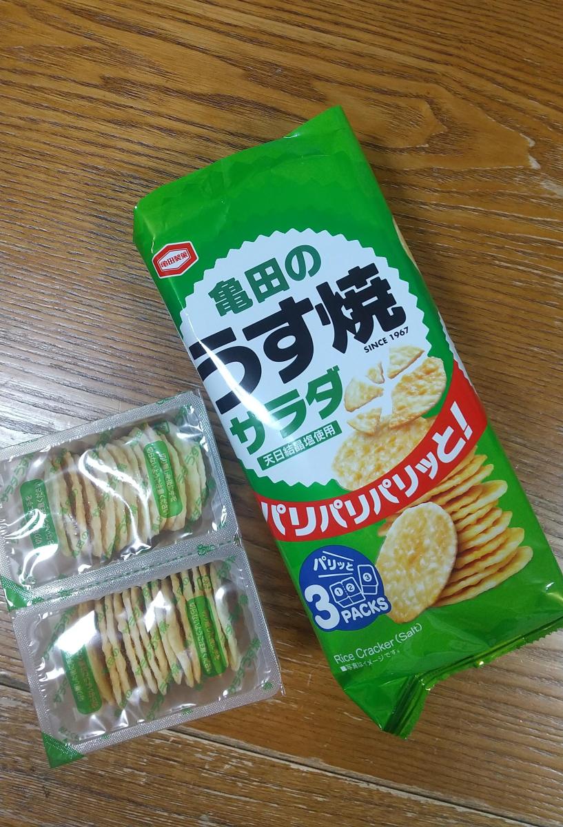 3パック入っていてお得感があります。1パックの枚数も結構入っているので、子どもとおやつに食べるのにピッタリです。うす焼のおせんべいで、サイズも大きくないのでパリッと食べやすいです。塩加減もちょうど良く美味しいです。