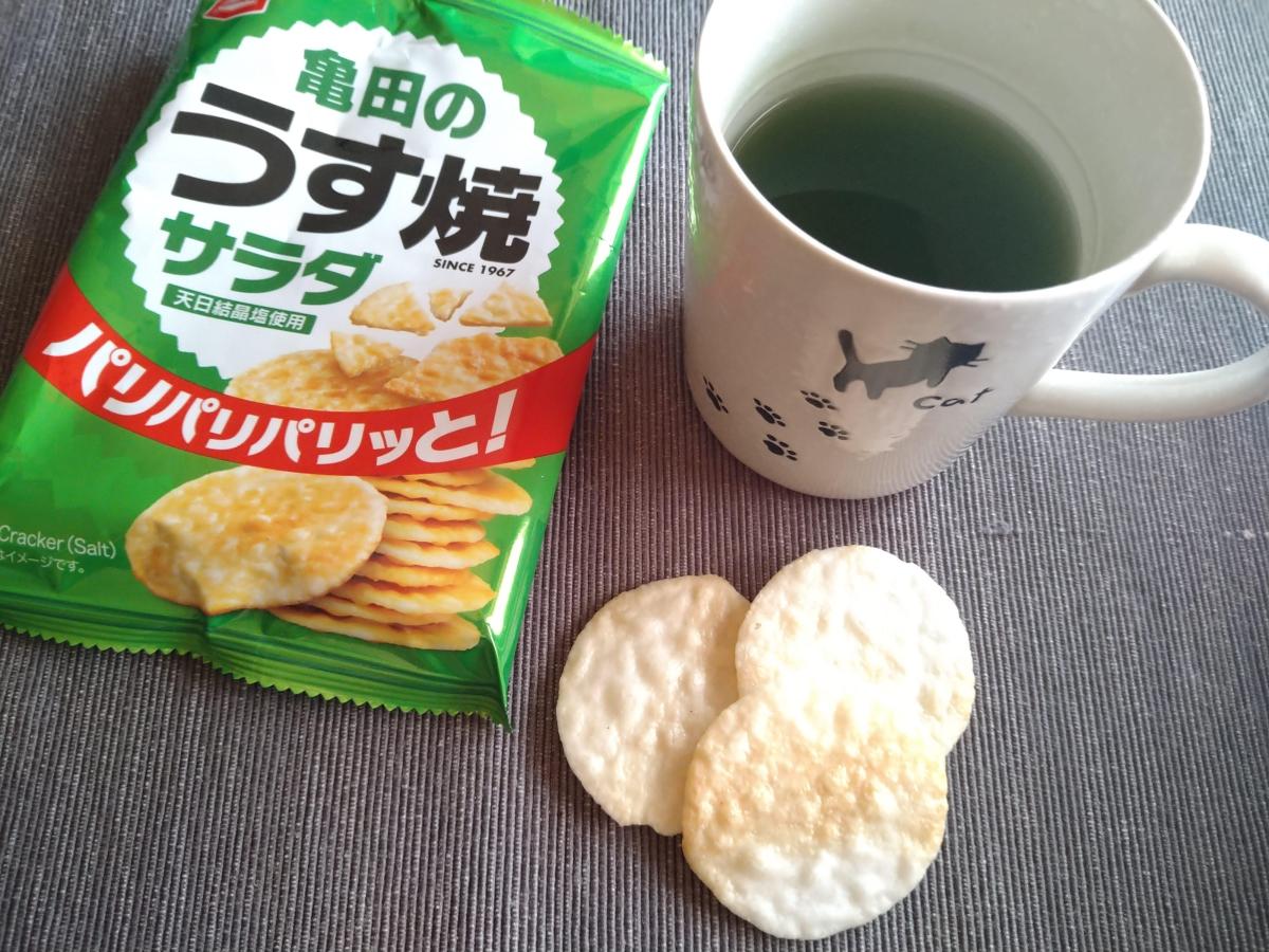 サラダ味かはわかりませんが、塩がしっかりきいてる点がとてもいいです。ロングセラーの理由がわかる気がします。パリパリがクセになりますね。