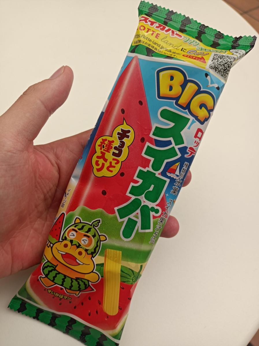 スイカの味はしませんが、さっぱりとしていてシャーベット状の部分を食べながら時々チョコチップが口の中で調和するのが好きです。夏が終わりかけの前に、店頭から消えてしまったのがさみしいです。