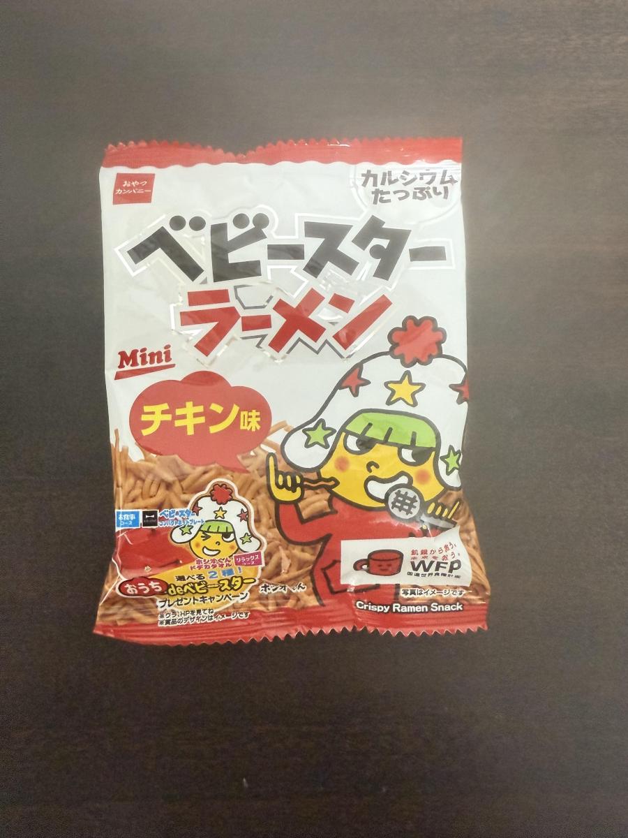 チキン味で似た感じのおやつタイプのブロック型ラーメン(即席袋ラーメンが小型になったようなヤツ・何個も詰め合わせになっている)がありますが、そのままでもおつまみ感覚で食べられるという言葉通りに食べてみるとかなり塩辛い。やはりお湯をかけて食べる・スープが溶けだすのが本来の食べ方だからなのでしょう、そのまま食べると濃すぎる味付け。それに比べてベビースターは「そのままつまんで食べる」のに適した塩気加減だと感じます。