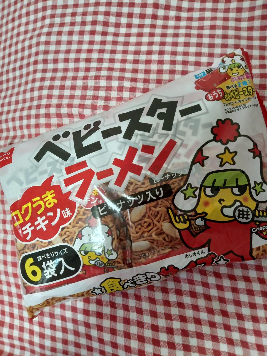 先日同じベビースターラーメンシリーズのピリ辛チキン味を食べて美味しかったので、久しぶりに定番も食べたくなり購入させていただきました。