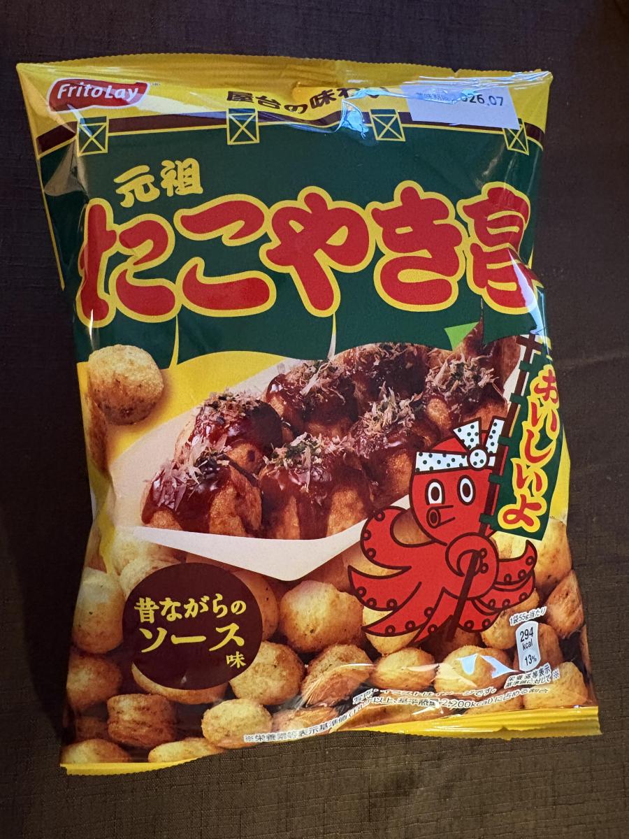 表にフリトレーと書いていて、昔食べたあのたこ焼きスナックはフリトレーの商品だったのかな?と思ってたら、裏には製造者はカルビーと記載してました。
