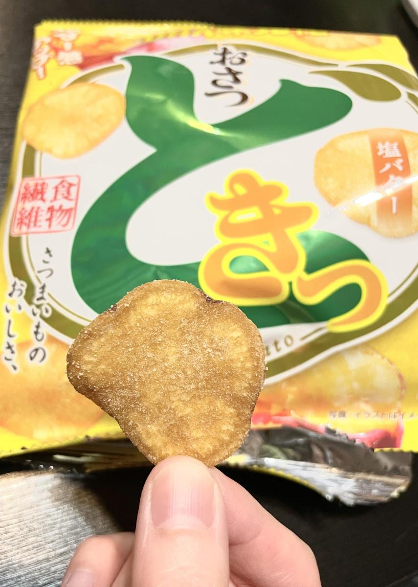 さつまいものスナック菓子は好きなのでよく食べます。おさつどきっは1枚の厚みが厚めなので食べ応えがあります。塩バター味がしっかり絡んでいて濃厚で美味しい。最後の方はちょっと味が濃すぎて、くどさを感じたけど、総合的には○でした!