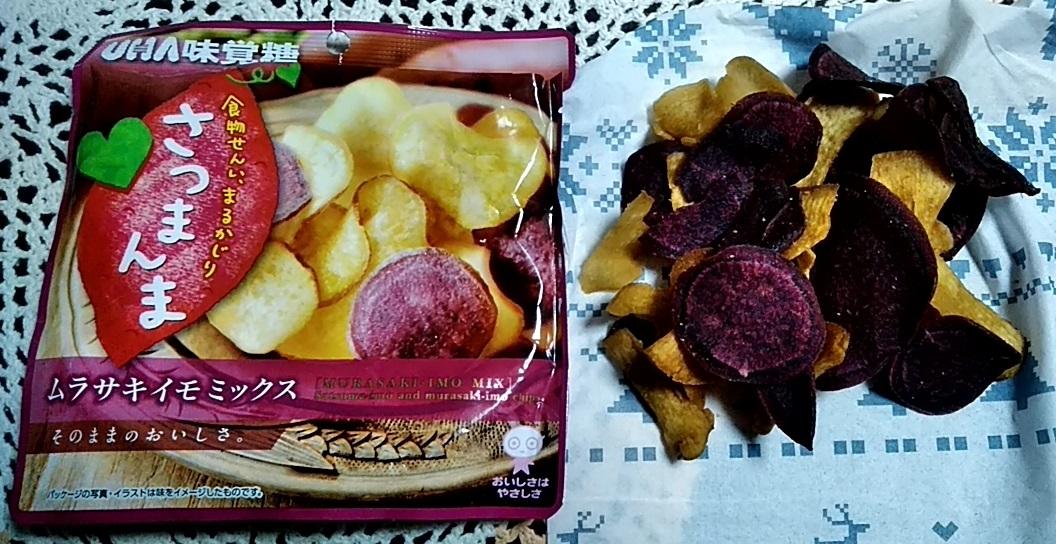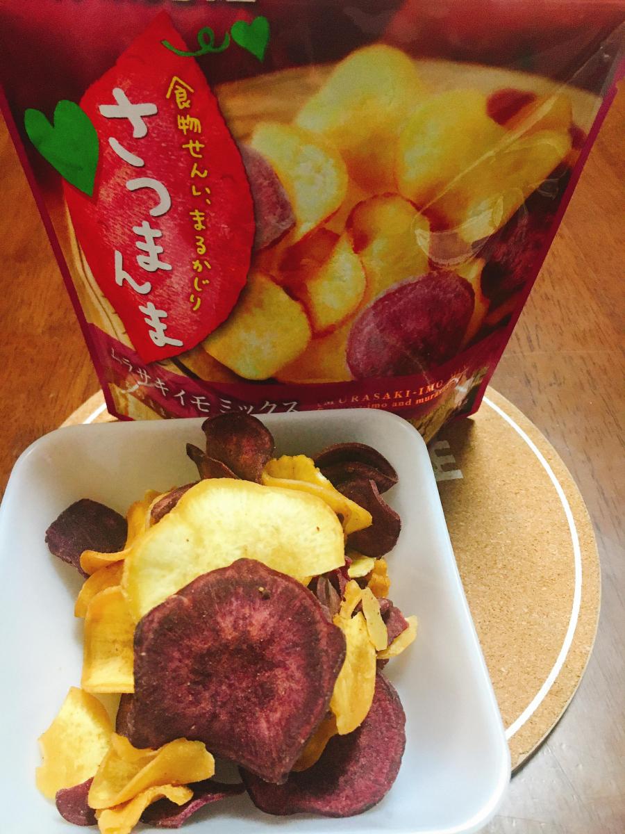 レンコンミックスがおいしかったので、ムラサキイモミックスも食べてみたくなりました。取り出してみるとパッケージよりも紫いもの量が多くて、ちょっとびっくりしました。ほとんどが一口サイズのチップスになっていて、つまんで食べやすかったです。芋満月のように薄いチップスで、噛む度にパリパリと軽快な音がします。さつまいものと紫いもの2種の味の違いがちゃんとわかり、おいしかったです。結構甘めなので、もう少し砂糖を抑えてくれた方が体に良さそうだと思いますが、疲れた時にはぴったりな甘さです。さつまいもが素材のチップスが好きな方におすすめしたいです。