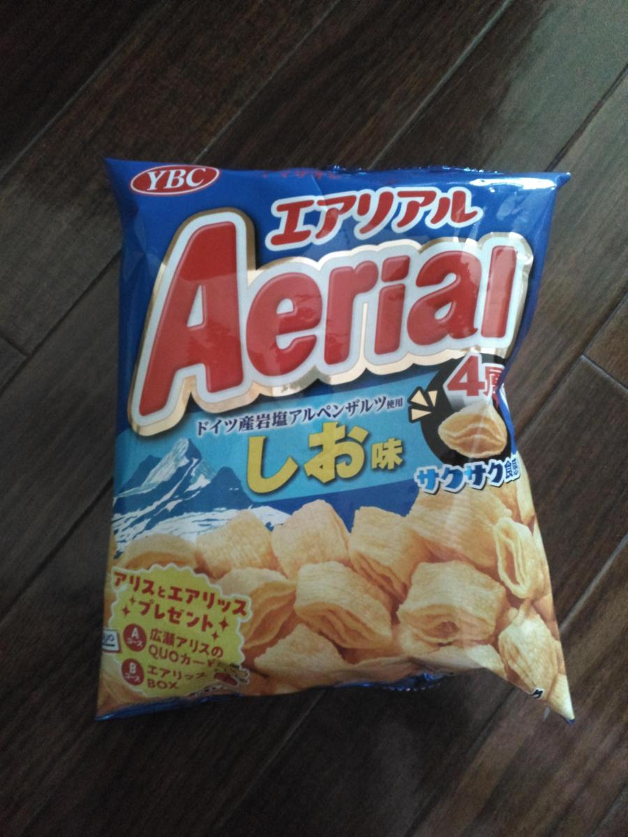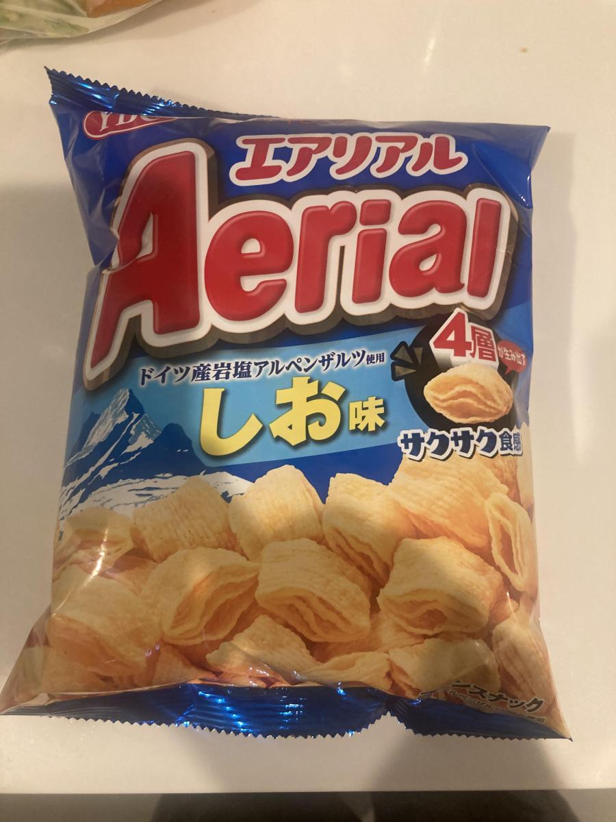 エアリアルはサクサクで独特の軽い食感が特徴的ですね。フレーバーの種類も豊富ですが、こちらの商品はシンプルな塩味です。だからこそ飽きが来なくて良いですね。