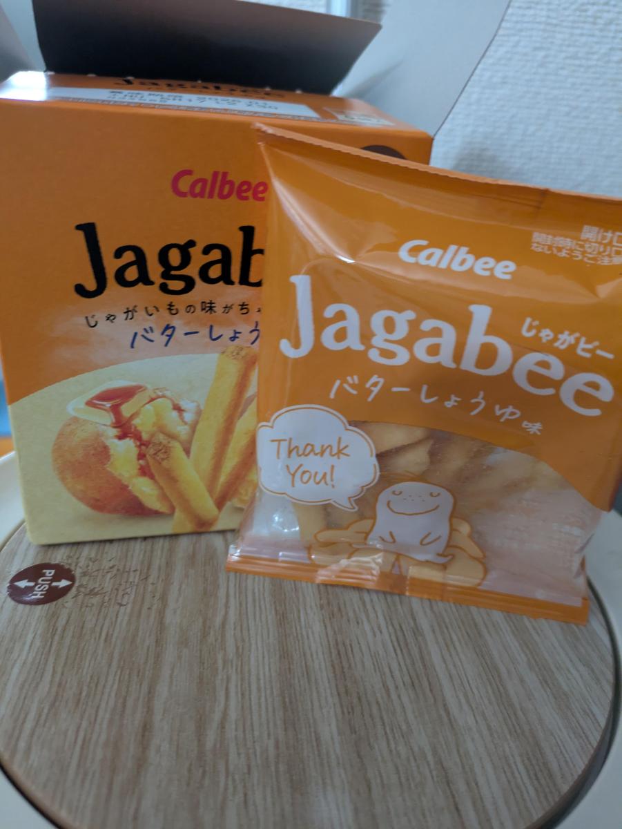このジャガビーというお菓子のバターしょうゆフレーバーには、食べればじゃがいものホクホクと分厚さが活きた厚くてサクサクとなるインパクトが深めの旨さを感じ、さらにバターしょうゆの香ばしくて甘じょっぱさも同時に味わえた事で、まるでじゃがバターを丸ごと食べた気持ちになれました!