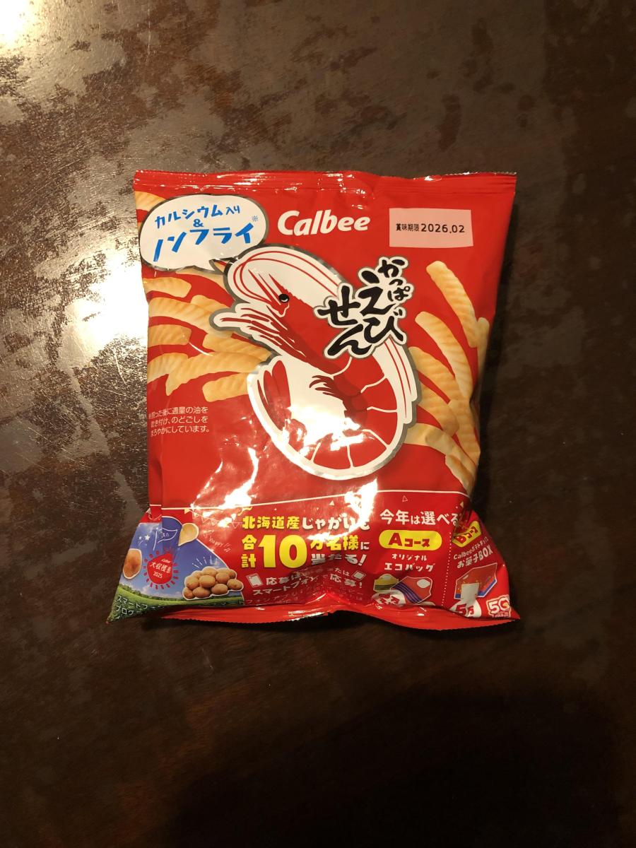 子どもの頃から馴染みのあるカッパエビ戦が、今食べてもやっぱり美味しい!サクサクした食感と海老の香ばしさが絶妙で、ついつい手が止まらなくなります。小腹が空いたときやお酒のおつまみにもぴったり。最近は少し味が濃くなった気がしますが、それがまたクセになる味わいです。家族みんなで楽しめる、ロングセラーの魅力を改めて実感しました。