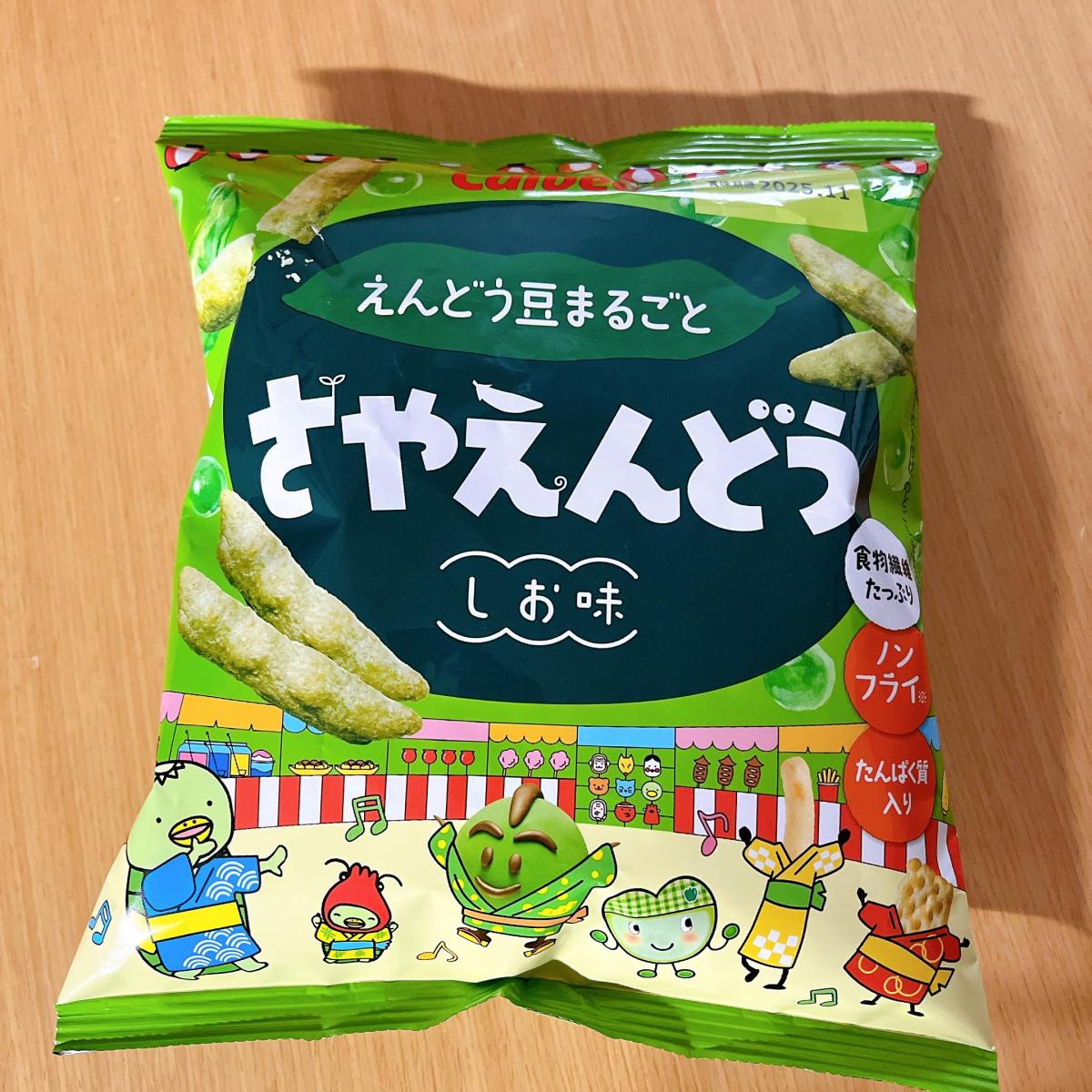 サヤエンドウの形がリアルで可愛い、さやえんどうのスナック購入しました。サクサクしっかりとサヤエンドウの味がきいていて美味しいです。たくさん入っていますがカロリーもそこまで高くなく、しかもノンフライ!なのがとても嬉しいです。たんぱく質まではいっていて健康にもいいお菓子だなと改めて思いました!