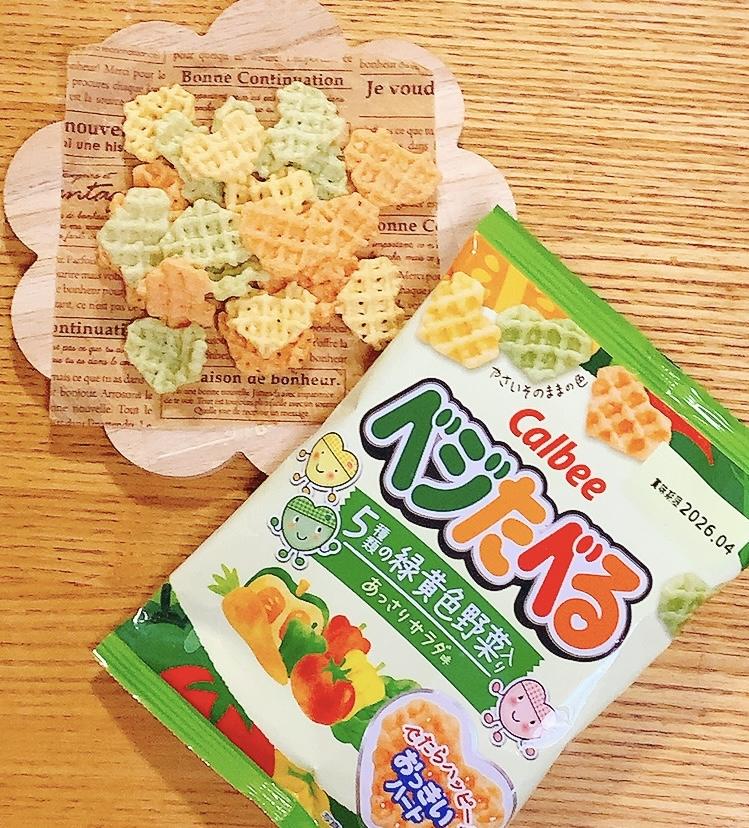 袋を開けてみると、カラフルな色合いのお菓子で子どもがとても嬉しそうでした。味も濃い味ではなくあっさりとしているので、子どもにも食べさせやすいなと感じました。緑黄色野菜入りなのも健康的で嬉しいです。