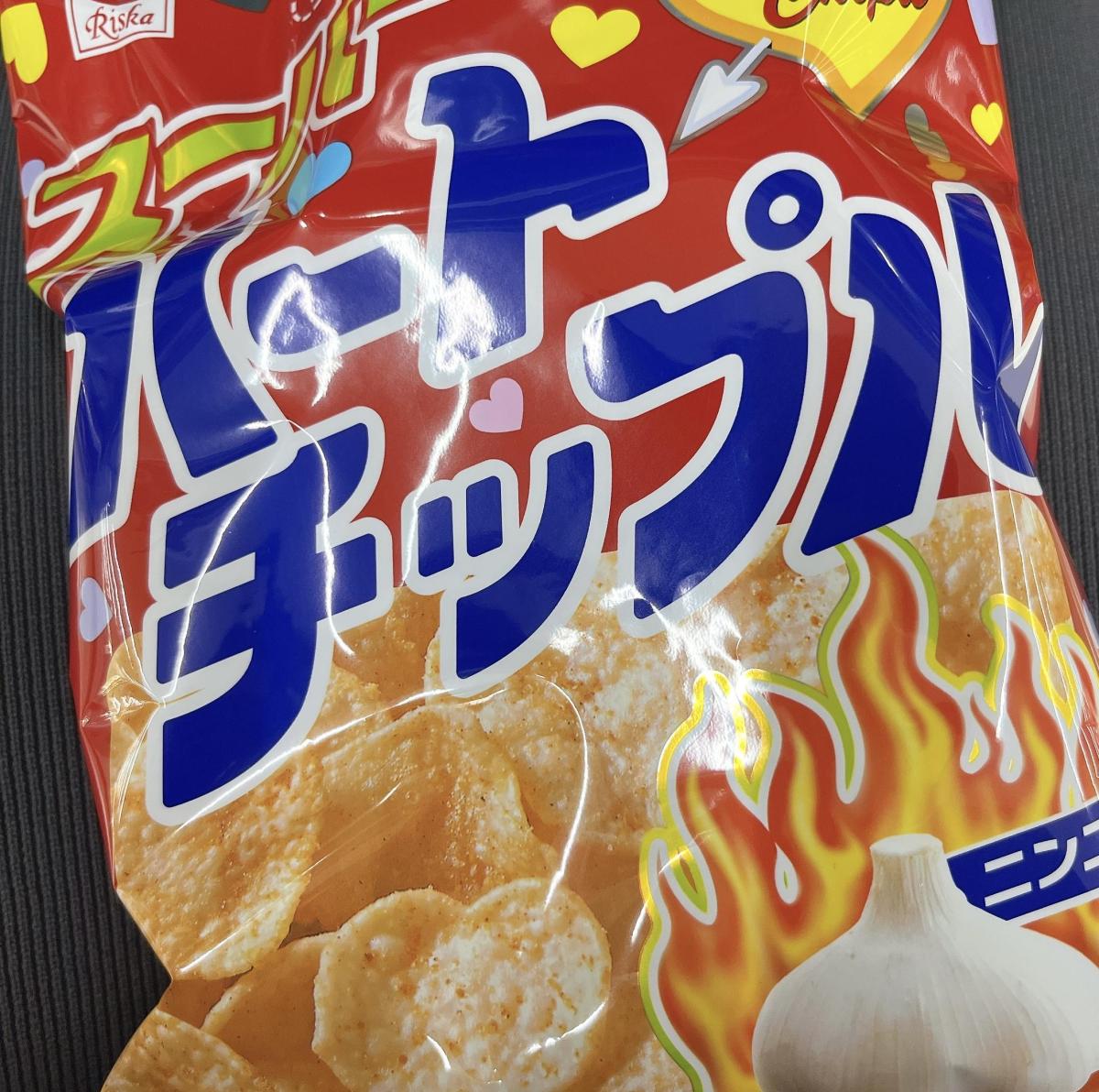 まずは、スーパーハートチップル…チップル?何故チップスじゃないんだ??…ビーフ味やコンソメ味ならわかるけど…ズバリ!ニンニク味!!やる気満々じゃん!!