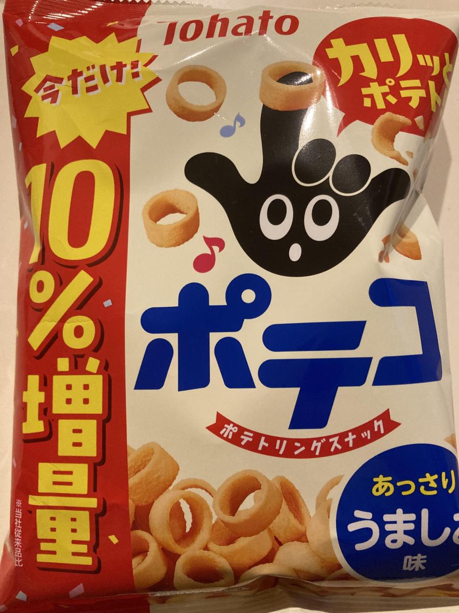 ポテコのうましお味は、あっさりしていて、食べやすいと思いました。食べきりサイズが良いです。また、友達の子供がポテコで遊んでいて、子供にはとても人気でした。とても美味しかったので、もう一度買いたいと思いました。