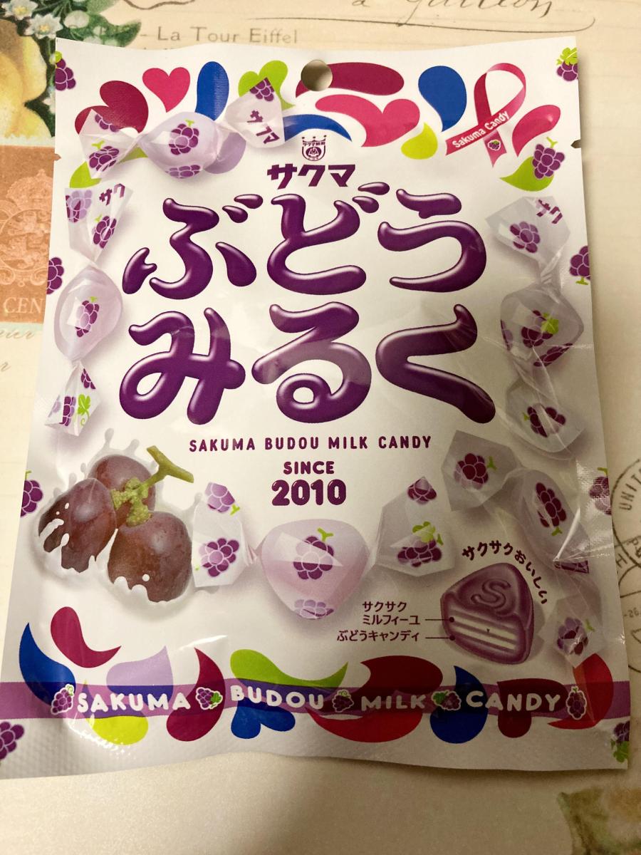 いちごみるくのイメージですが、ぶどうもあったので気になり購入してみました。パッケージがかわいいです。巨峰果汁入りで、食べればぶどうの風味が口いっぱいに広がり、ミルクとブドウ味が良く合い、甘酢っぱくて美味しいです。ザクザクとしたこの飴特有の食感も健全です。ぶどうも美味しいです。コスパもいいのでまた購入してみたいなと思いました。