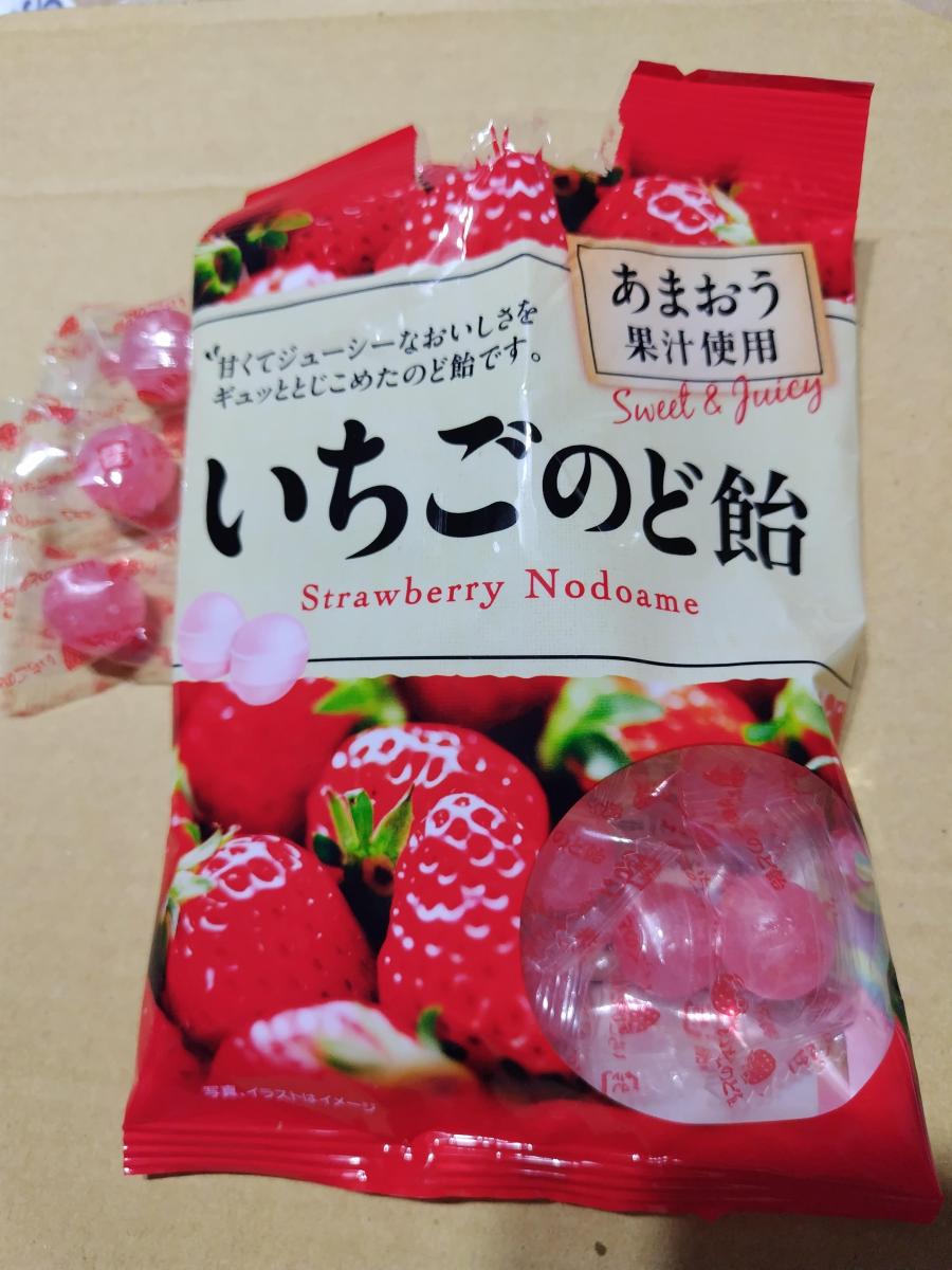 赤くて小っちゃくて丸くてかわいい!小梅ちゃんみたい。こんなにちっちゃくてかわいいのにあまおうの果汁が使われていてしっかりいちごの味がしてジューシーで美味しいです。フルーツキャンデーとして十分美味しいのにちゃんとのど飴感もあってとってもいいです。