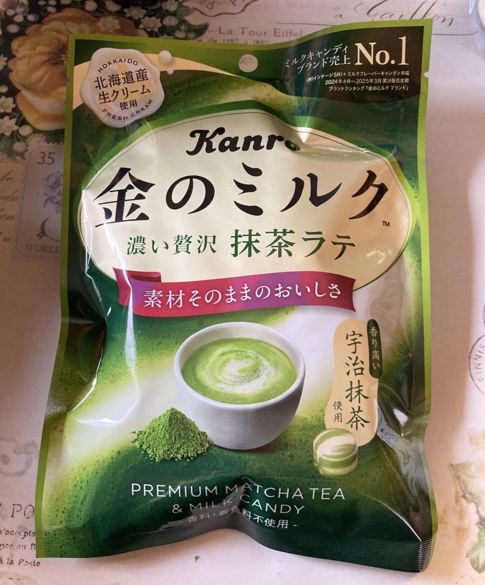 金のミルクキャンディ抹茶ラテ味と抹茶好きには気になる味わいだったので、購入してみました。抹茶感はかなり薄いです。抹茶らしい苦みや深みは、私の舌ではわからないほどでした。もう少し抹茶の苦みや渋みを感じられると思っていたから、ちょっと残念です。。ミルク感はかなり濃い味わいで、甘さがたっぷりと感じられました。
