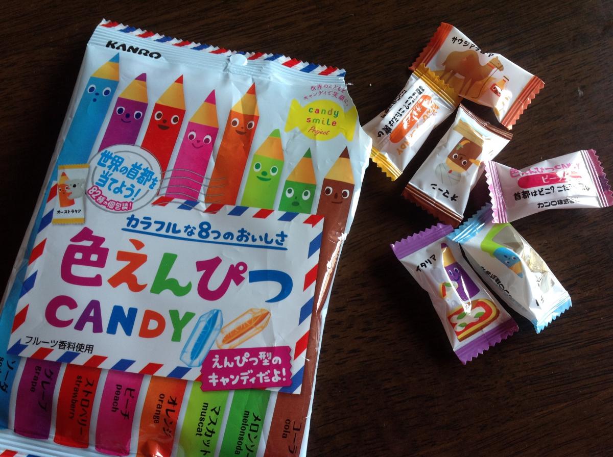えんぴつの形になっているキャンディーでフルーツキャンディーの種類も多く入っているので、最後まで飽きずに食べれました。小さいキャンディーで結構多く袋に入っていて、どんな絵柄がついているのか見るのも楽しかったです。