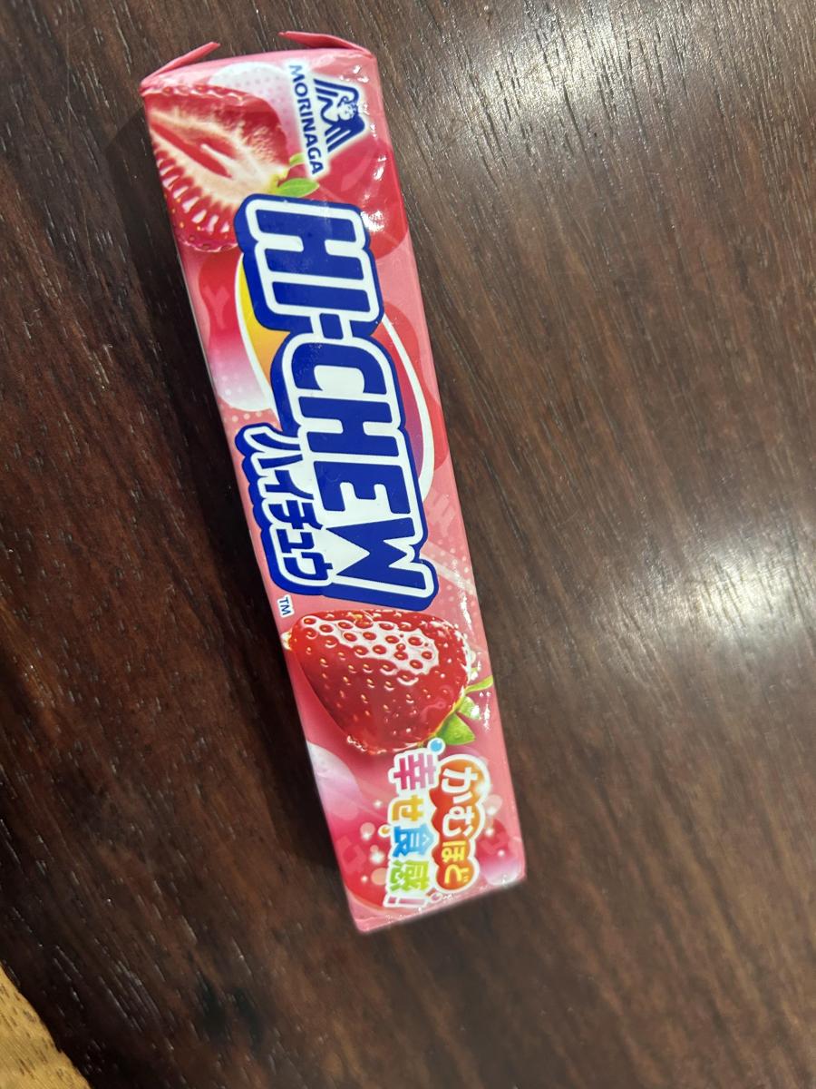 濃厚で甘酸っぱい味わいのストロベリーのハイチュウで美味しいです。ストロベリーチップ、濃縮ストロベリー果汁、ストロベリージャムが入っていてストロベリーの香りがしっかりとします。 昔からありますが、以前よりもストロベリー感が強くなったように感じます。