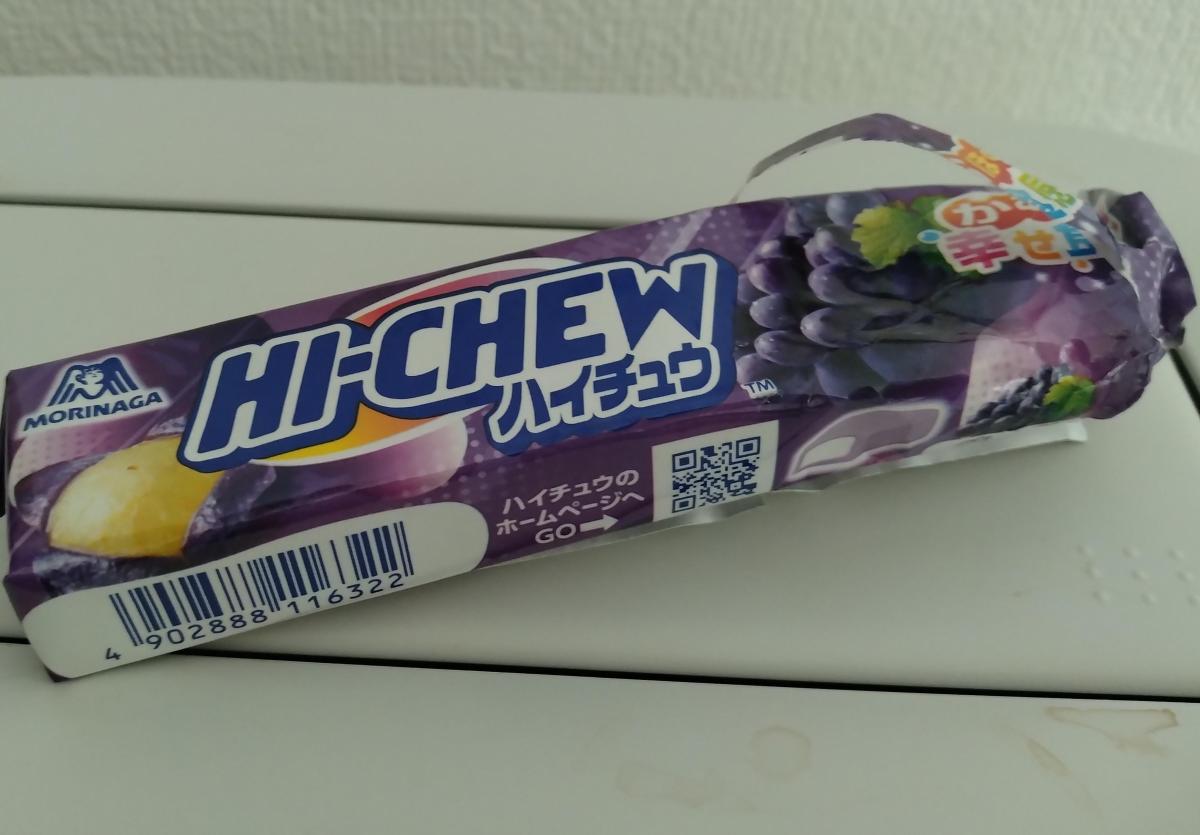 ハイチュウ、久しぶりに食べたくなり、秋らしいぶどうの味にしました。ぶどうのジューシーな味わいが口に広がり、ちょっとした息抜きになりました。包み紙のおみくじとメッセージにいつも癒されます。
