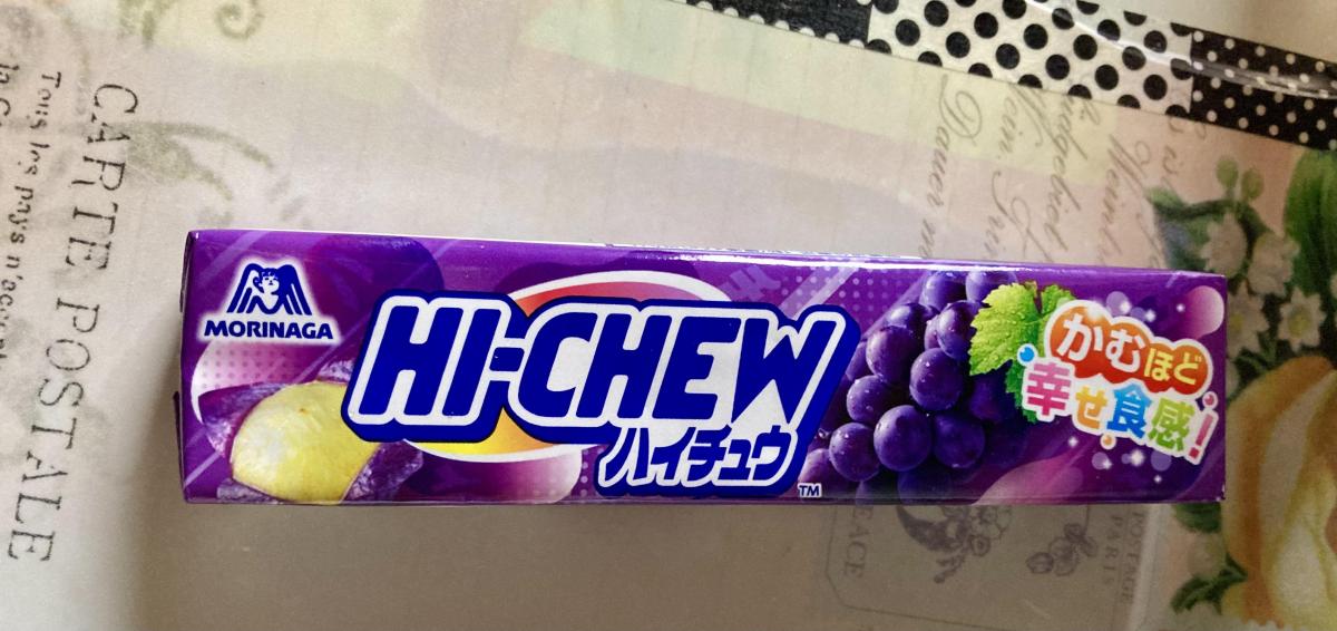 キャラメル等の柔らかい飴が苦手でハイチュウもほとんど食べたことなかったですが、食べてみると美味しかった。グレープの果汁感がしっかりある。甘ったるくないのが良い。わりと沢山入っててコスパも良い。