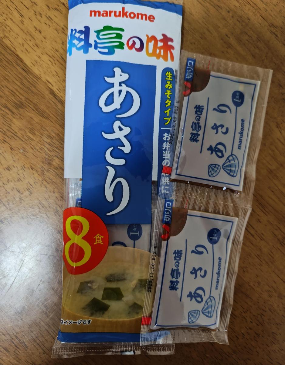 個包装で8袋入っていて100円ちょいで買えるということで、、おして知るべしで、アサリはちっさいのが2粒くらいしか入ってませんでした。でもアサリエキスはちゃんと感じられます。ワカメや小ねぎを追加で入れて食べると美味しいアサリ味のお味噌汁になります。